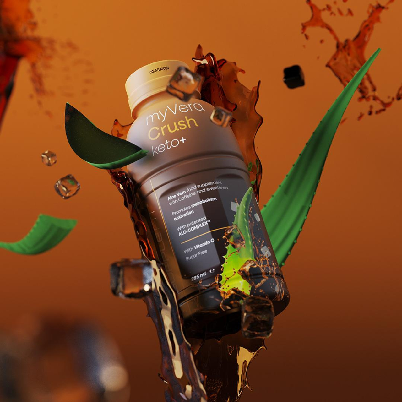 MYVERA CRUSH Keto + est un complément alimentaire cétogène avec caféine et édulcorants à base de jus et de pulpe d'aloe vera et de vitamine C, caractérisé par un délicieux goût de cola. Dotés de nombreuses propriétés bénéfiques, l'aloe vera et la vitamine C sont convenablement équilibrés dans la boisson pour former le complexe breveté ALO-COMPLEX™, qui exerce une action purifiante et antioxydante sur le corps.